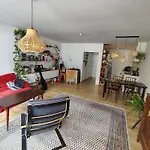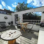 Cosy Apartment With Big Quiet & Sunny Terras is voorzien van een wasmachine, en biedt een balkon, een zitruimte en een keuken, evenals uitzicht over de tuin. Voor extra gemak zijn een apart toilet en een douche beschikbaar bij dit appartement. Verder kunt u genieten van een droger in de badkamer.